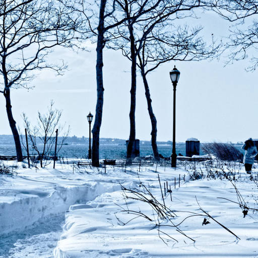 Panorama from Battery Park after the 2016 snow storm that paralyzed New York with tons of snow.